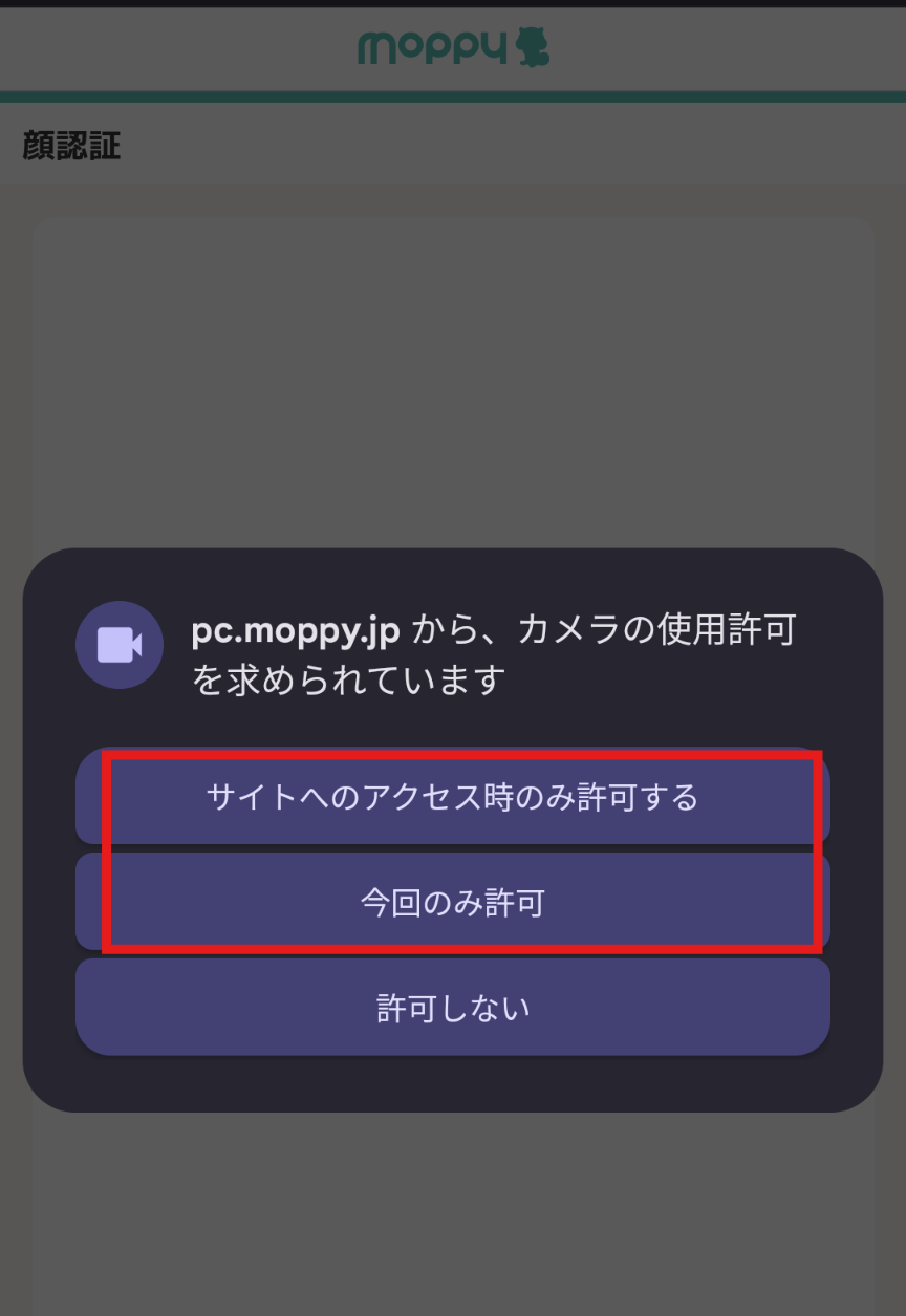 パソコンでご利用の場合は、ご利用のブラウザの【カメラの使用許可設定の変更方法】をご確認ください。 -
