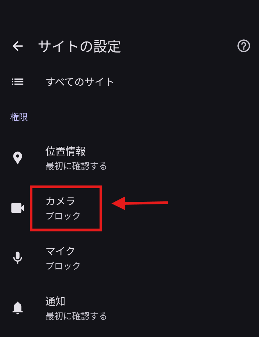 サイトごとのカメラ設定がブロックされている一度「許可しない」を選ぶと、以降ずっとブロックされる可能性がございます。