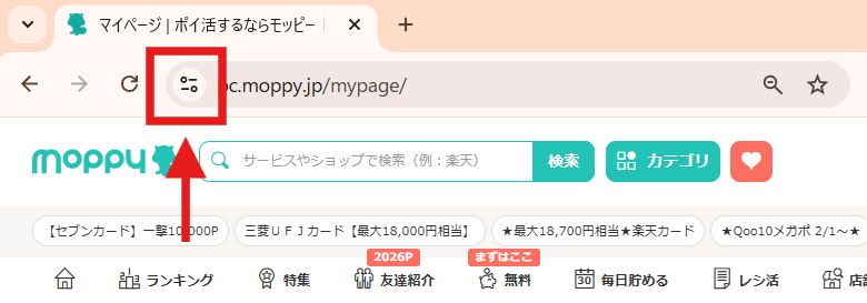 ・Safariでモッピーを開く